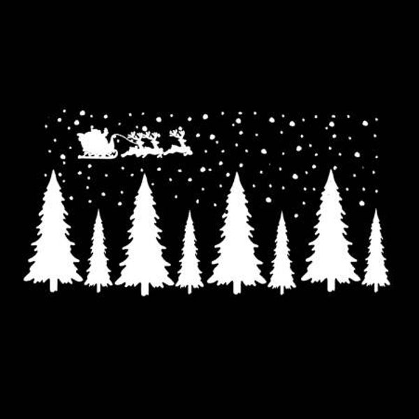 In de set vind je vier vellen vol dennenbomen en sneeuwvlokken en één extra vel met de kerstman en zijn rendieren – klaar om je ramen in kerststemming te brengen.
