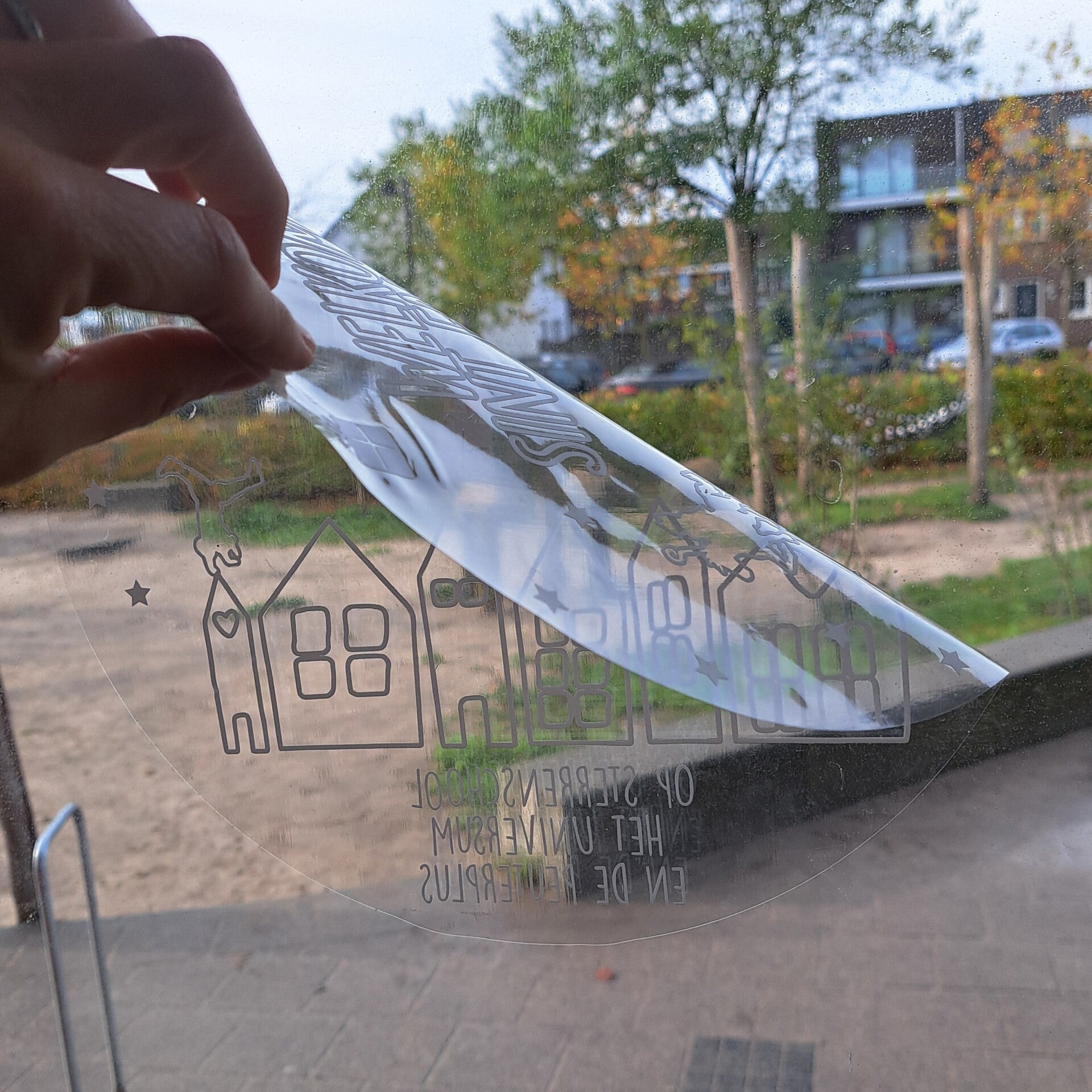 Materiaal: statisch raamfolie (herbruikbaar)